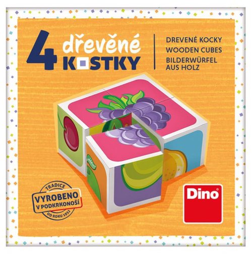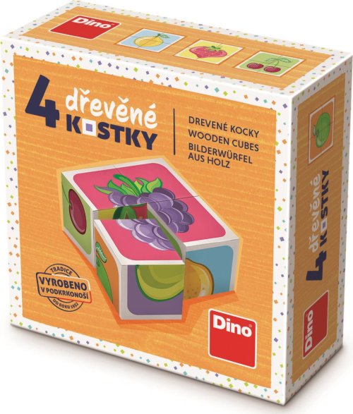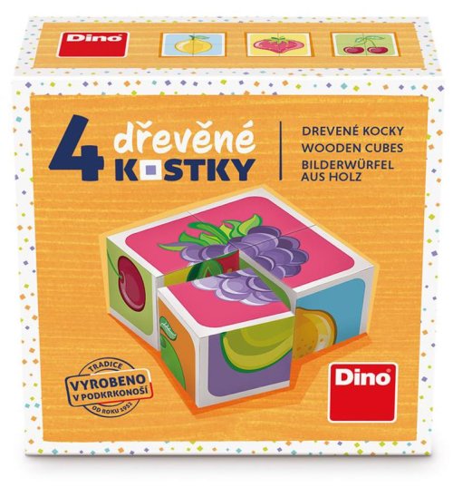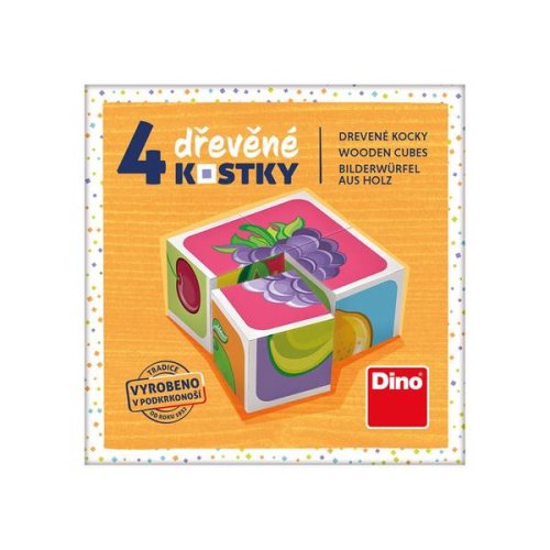 Do těchto dobrůtek se děti nejspíš nezakousnou, ale i kdyby se tak stalo, nic se neděje. Dřevěné kostky jsou totiž naprosto bezpečné i pro nejmenší ratolesti. Ze čtyř kostek si děti mohou poskládat šest různých obrázků ovoce, nebo si zkusit postavit malý komín či věž. Hraním si budou trénovat obratnost ručiček a také představivost. Hlavní vlastnosti: kostky se vyrábí z českého smrkového dřeva v naší ryze české továrně Dino Topa oblíbená hračka pomáhá dětem rozvíjet nejen fantazii a tvořivost, ale také motorické schopnosti ke složení obrázku mohou menší stavitelé používat předlohu, starší to zvládnou bez ní kvalitní přírodní materiál přežije celou generaci a je zdravotně nezávadný vyhrají si s nimi šikulové od 3 let