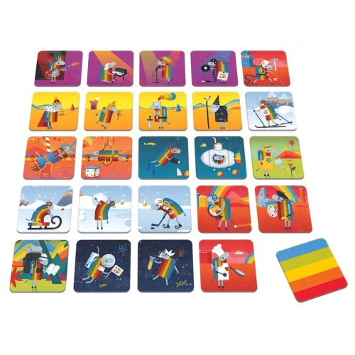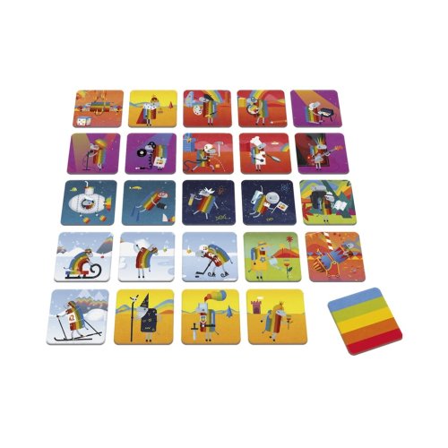 Jak dělá ovečka? Jestli myslíte, že „bé“, tak to není tak úplně pravda. Každé dítě dnes už ví, že duhové ovečky dětské televizní stanice ČT Déčko dělají „dé“. Veselé ovečky jsou aktivní, sáňkují, létají do vesmíru, lyžují i malují. Zahrajte si tuto tradiční hru, která procvičuje paměť, pozornost a postřeh a po generace baví děti. Hrací kartičky z pevného a zdravotně nezávadného kartonu navíc zaručeně vydrží i každodenní trénink. Zvítězí ten, kdo posbírá nejvíce shodných dvojic. Balení obsahuje 48 pevných kartiček. Hlavní vlastnosti: trénuje pozornost, postřeh a paměť pro všechny věkové kategorievyrobeno v ČR