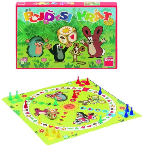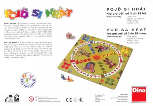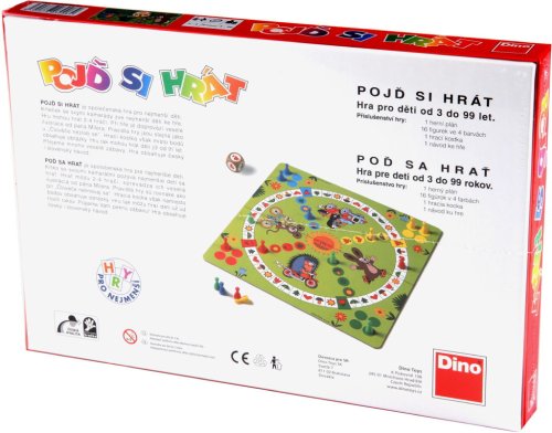 Hra Pojď si hrát pro 2 - 4 hráče vhodná od 3 let. Balení obsahuje 1 herní plán, 16 figurek ve 4 barvách, 1 hrací kostku s obrázky, 1 pravidla.