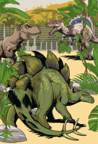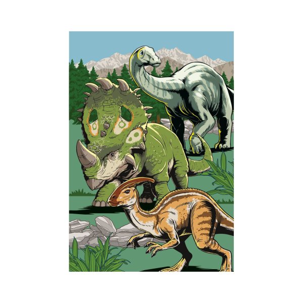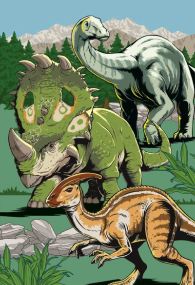 Dvě puzzle pro děti s kresleným motivem dinosaurů.