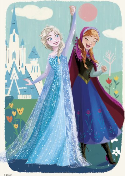 Dvě puzzle s motivem sester z Ledového království. Rozměr složeného puzzle cca 26 x 18 cm