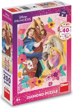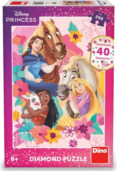 Puzzle ze série Diamond puzzle se po složení dozdobuje třpytivými kamínky. Poskládejte obrázek, slepte ho přiloženým lepidlem a dozdobte podle své vlastní fantazie 40 samolepícími třpytivými kamínky. Balení obsahuje: 200 dílků puzzle, 1 lepidlo, 40 samolepících kamínků. Rozměr složeného puzzle cca 33 x 47 cm