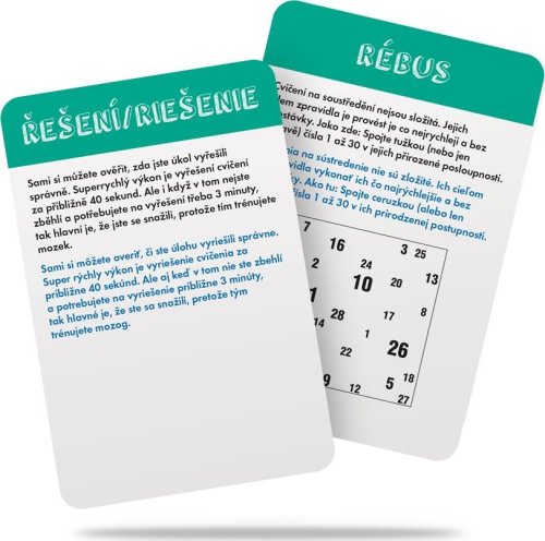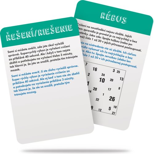 Zábavná cestovní hra od českého výrobce Dino. V krabičce najdete 56 rébusů a cvičení pro šedé buňky mozkové, které procvičí prostorovou představivost, logické uvažování i paměť. Některé jistě hravě zvládneš, jiné tě pořádně potrápí. Potrénuj mozek sám, nebo s příteli. Hra obsahuje: 56 karet