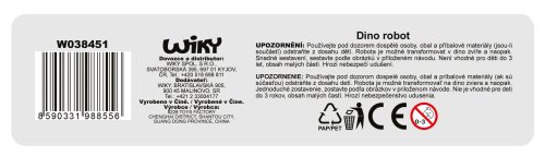 Dino robot. - český obal. Rozměry 17x3x19 cm. 2 varianty - modrá, zelená.
