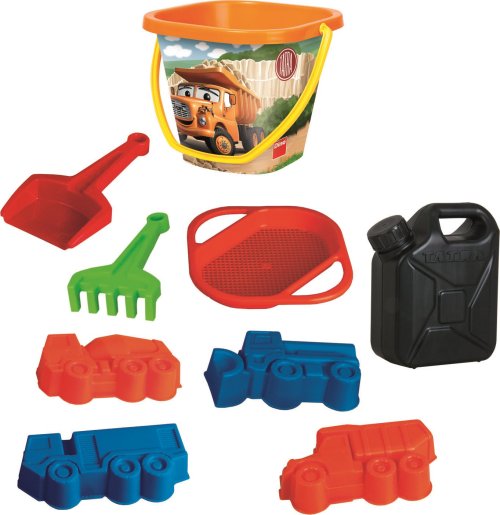 Tatru, bábovky, kyblík, lopatku... máte na pískoviště sbaleno opravdu VŠECHNO? Pokud se vybavíte také tímto devítidílným setem, pak určitě ano. Obsahuje téměř vše, co k legendárnímu náklaďáku můžete potřebovat. Čtveřice formiček, nářadí, kanystr, sítko i kbelík strhnou k písečným hrátkám nejen děti, ale i vás.