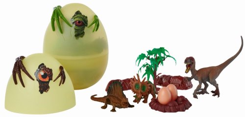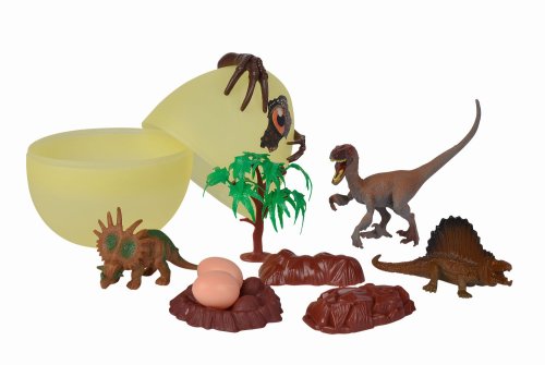 Ve velkém dino vajíčku se skrývají celkem 3 druhy cool dinosaurů s doplňky. Na vejci je vytištěno dinosauří oko a jsou na něm dva dinosauří pařáty. Ideální dárek pro fanoušky dinosaurů. Také bude vypadat dobře ve velikonočním košíku. Velikost vejce 17 cm. Dinosauři obsažení ve vajíčku mají mezi 9 a 12 cm.