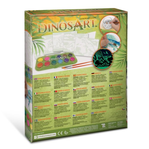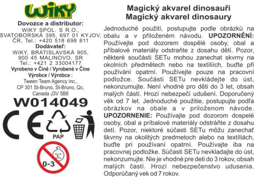 12 akvarelových barev, 5 magických akvarelových desek, 2 štětce, pokyny, sběratelská kartička dinosaura