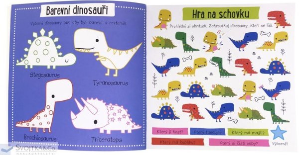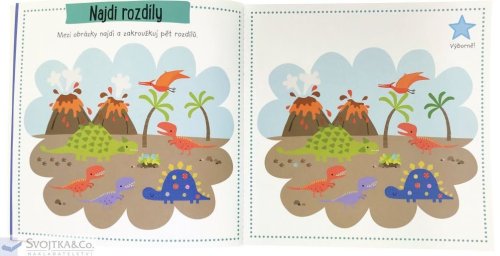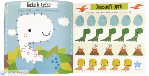 Knížka plná pěnových nálepek se spoustou prehistorických tvorů - více než 75 pěnových nálepek a další zábavné hry zaujmou každého malého nadšeného paleontologa. Vstup do dávných a tajemných časů doby prehistorické! V této krásně ilustrované knížce na tebe čeká více než 75 různých pěnových nálepek dinosaurů, zkamenělin, sopek, ale i zvědavých paleontologů. Kromě zábavných her s nálepkami je kniha plná spojovaček, hledání rozdílů, a dokonce i zapeklitých bludišť, které můžeš dozdobit samolepkami a dokreslit dle vlastní fantazie. A po splnění každého úkolu si můžeš za odměnu nalepit hvězdičku na určené místo. Nálepky, které nevyužiješ, si samozřejmě můžeš nalepit, kamkoliv budeš chtít.