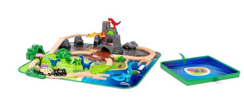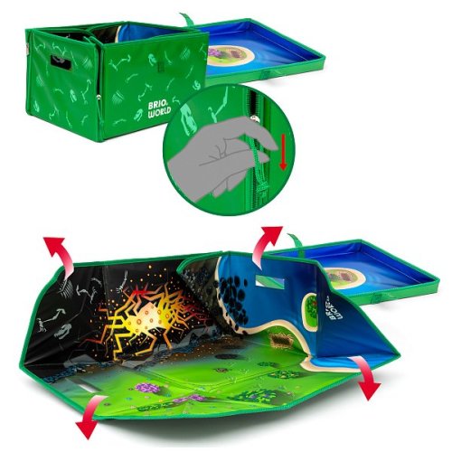 Prozkoumejte svět dinosaurů v Dinosauří vlakové sadě deluxe. Tato 45dílná vláčkodráha je jurskou džunglí plnou zábavy a příběhů, doplněnou sopkou se světly, zvuky a efekty páry. Připojte se k 8 dinosaurům v zářivých barvách s jedinečnými funkcemi, jako jsou například pohyblivé končetiny a klasické magnety BRIO, jež zajistí interakci s okolním světem. Součástí sady je praktický úložný box, který lze po rozložení využít jako herní podložku pro ještě intenzivnější dino dobrodružství. Dinosauří luxusní sada obsahuje 45 dílů: 8× figurky dinosaurů, 1× vybuchující sopku, 1× lávovou jeskyni, 1× travnatou jeskyni, 1× vláček s dinosauří tematikou a vagonky, 4× tematické kolejnicové díly, 3× železniční pilíře, 18 dřevěných kolejnic/výhybek a spoustu doplňků. Sopka funguje na 2 baterie AA, které nejsou součástí. Rozměry balení: 32,7 x 38,6 x 23,2 cm. Věk: 3+