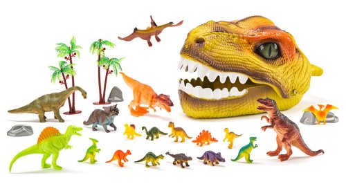 Vydejte se do pravěku s fantastickou Dinosauří hlavou ukrývající figurky a doplňky. Tento kompletní herní set s 25 díly přináší nekonečné dobrodružství pro všechny malé milovníky dinosaurů. Dinosauří hlava slouží jako praktický úložný box – pojme všechny figurky i doplňky a díky madlu ji děti snadno kamkoliv přenesou. Stačí stisknout tlačítko pod čumákem a tlama se otevře – hra může začít! Díky click systému lze dinosauří tlamu otevřít v několika úhlech. Uvnitř najdete pestrobarevnou sadu dinosaurů a doplňků, které vytvoří v dětském pokojíčku úžasnou pravěkou scénérii. Celý set je zabalen v open boxu s vnitřním potiskem prehistorické krajiny, který lze využít jako součást hry nebo originální výstavní dekoraci. Obsah sady: 1 x dinosauří hlava, 3 x figurka dinosaurus 11–16 cm, 3 x figurka dinosaurus 10–14 cm, 12 x figurka dinosaurus cca 5 cm, 4 x skalní útvar, 2 x strom. Vyrobeno z kvalitního plastu. Rozměry hlavy: 17 x 18 x 31 cm. Rozměry balení: 22 x 32 x 19 cm. Nevhodné pro děti do 3 let. Věk: 3+
