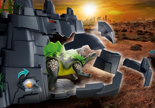 Připravte se na velkou bitvu u dinosauří skály! Roboti se připravují na boj s velkými dinosaury a obrněnými rytíři. Mezitím se však dinosauři brání a snaží se zachánit historii Dinosaurů. Ke kterému týmu se přidáš? DINO RISE je akční herní téma soustředěné na odhodlaný tým přátel. Skála zahrnuje světla, zvukové a vibrační efekty. Sada pomáhá otevírat více vzrušujících příležitostí pro zábavu a hraní. Vhodné pro děti od 5 let. PLAYMOBIL jsou stavebnice pro děti různých věkových kategorií, které jsou tématicky zaměřené a mají mnoho propracovaných doplňků. Dílky jsou hygienické, lehce omyvatelné a nepouštějí barvu. Stavebnice Playmobil podněcují fantazii, kreativitu a podporují dětský vývoj.