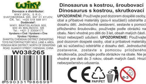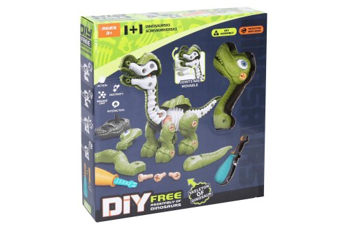 Dinosaurus s kostrou šroubovací. Obsahuje: dinosaurus, šroubovák, náhradní koncovka šroubováku a a šroubky.