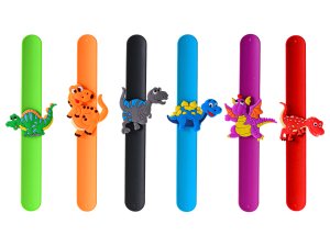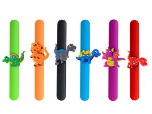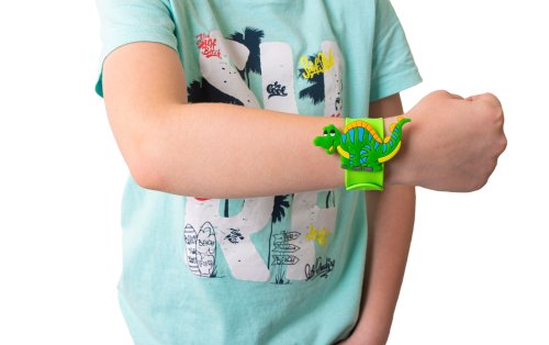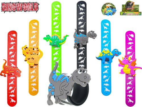 Ukažte všem, že jste fanoušek dinosaurů s tímto veselým dino náramkem. Klepněte náramkem o zápěstí a sledujte, jak se kolem ní ovine. Náramek je o velikosti 21,5 cm. Dostupné v 6ti barvách - oranžový, černý, fialový, modrý, zelený a červený. Vhodné pro děti od 3 let.