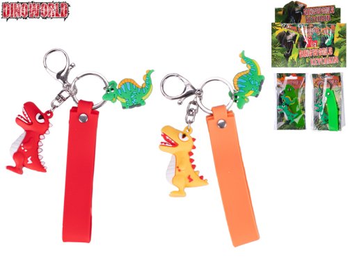 Dinoworld přívěsek na klíče dinosaurus na kartě - mix barev (červená, světle zelená, tmavě zelená, oranžová)