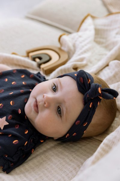 Materiálové složení: šaty + čelenka 95% bavlna 5% elastan, legíny 60% bavlna 35% polyester 5% elastan