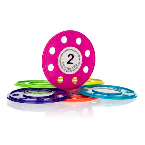 Ppotápěcí disky SPORTWELL jsou skvělou pomůckou pro výuku plavání i zábavu ve vodě. Balení obasahuje kroužky šesti barev. Doporučený věk od 3 let.