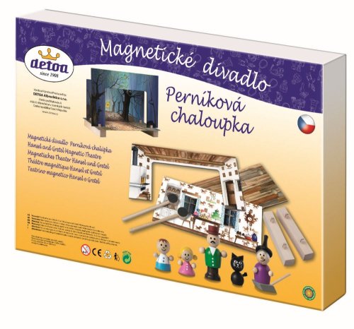 Magnetické divadlo Perníková chaloupka je výborná zábava pro malé i velké na motivy oblíbené pohádky. Ve figurkách je vlepený magnet, který se přitahuje k magnetu ve vodítku.