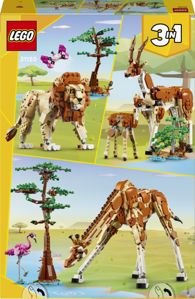 Tato stavebnice LEGO dětem přináší svět nekonečných herních možností. Ze stejné sady kostek si postaví hned 3 různá zvířata: Pohyblivou žirafu se stromem a plameňákem, kterou pak přestaví na 2 pohyblivé modely gazel – dospělou gazelu s mládětem – se 2 keři nebo model přeskládají na lva se stromem a motýlem.