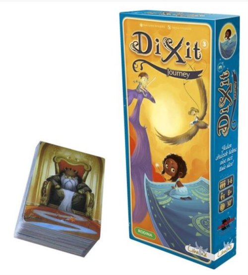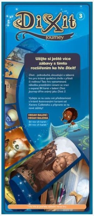 Dixit 3: Journey neobsahuje bodovací stupnici, figurky a tipovací žetony - je hratelné pouze se základním vydáním hry Dixit nebo Dixit Odyssey .