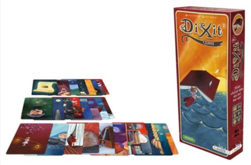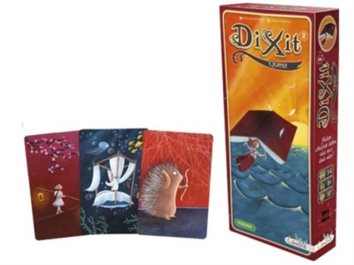 Dixit 2: Quest neobsahuje bodovací stupnici, figurky a tipovací žetony - je hratelné pouze se základním vydáním hry Dixit nebo Dixit Odyssey .