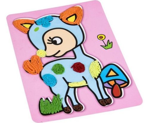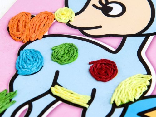 Kreativní sada pro malého umělce v podobě barevných papírových provázků a obrázků na přilepení. Jednoduchá, barevná sada pro děti, které rády vytvářejí něco samostatně. R ozvíjí umělecké schopnosti dítěte, přináší spoustu radosti a zábavy. Hračka rozvíjí koordinaci očí a rukou, jemnou motoriku a podporuje také kreativní myšlení. Hotový obrázek lze vložit do rámečku a zavěsit na zeď. Hotový obrázek se také může stát obálkou brožury, karet nebo skvělým dárkem. Sada obsahuje: