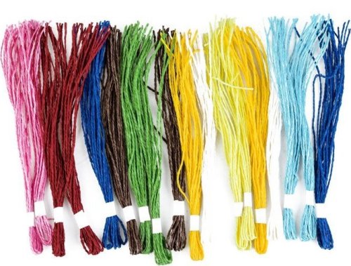 8 barevných obrázků (předloh) barevné papírové provázky na lepení nůžky 2 špejle vatové tyčinky 8 kolíčků lepidlo návod