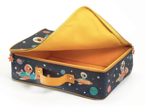 Kufřík z pevného plátna s rukojetí v jemných barvách je hezky ilustrovaný vesmírným dekorem. Kufřík je vodotěsný, uvnitř jsou dvě přihrádky a 2 kapsy. Je lehký a díky rukojeti se jednoduše přenáší. Uzavíratelný pomocí kvalitního obousměrného zipu. Kufřík lze čistit pouze omytím povrchu. Rozměry: 39 x 28 x 11 cm Materiál: 80% bavlna, 20% polyester