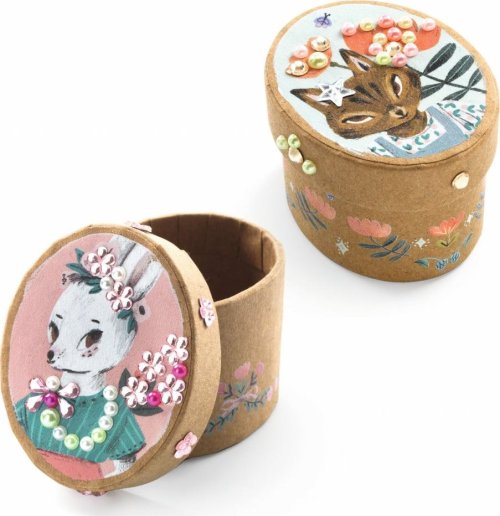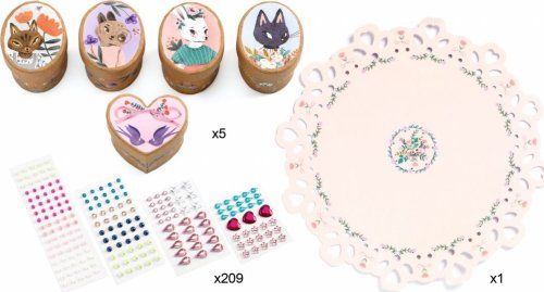 Kreativní sada k vytvoření 5 mini krabiček, které lze ozdobit pomocí více než 200 samolepicích drahokamů.