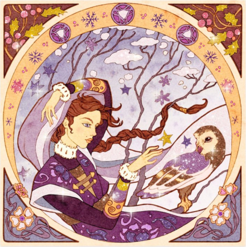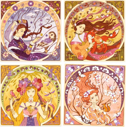 Třpytivé pískování s ilustracemi inspirovanými stylem velkého secesního mistra Alfonse Muchy.