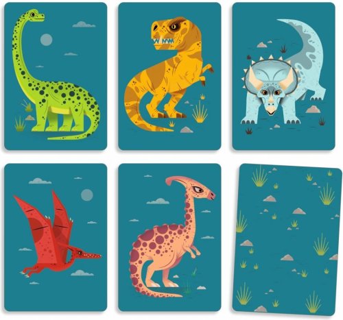 Stegosaurus, triceratops, brachiosaurus a pterodaktylové jsou venku! Vybírejte pečlivě, protože karty si hráči předávají a v každém tahu si můžete vzít jen jednu.