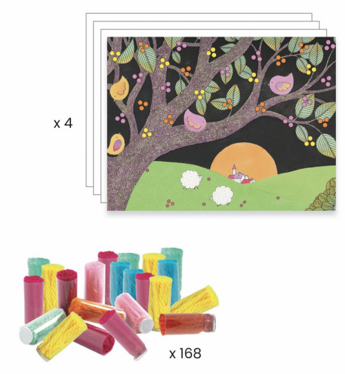 Super zábavná kreativní sada s barevnými střapečky. Sada obsahuje 4 ilustrované předlohy, které děti dotvoří pomocí 168 střapečků ukrytých v tubách. Tuba má z jedné strany lepící kolečko, které se přiloží na příslušné místo na obrázku, tubu jednoduše stáhnete a uvolníte tím svazek bavlnek, které vytvoří krásný střapatý květ. Poskládáním pomponů dle ilustrovaného návodu nebo dle vlastní fantazie vytváříte krásné plastické obrázky, kterou budou vypadat skvěle jako dekorace pokojíku. Vhodné pro děti od 3 let. Tento výrobek není hračka. Jedná se o dekorativní předmět.