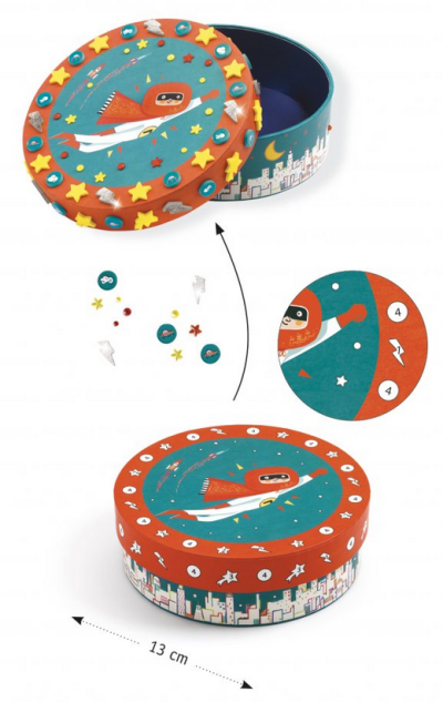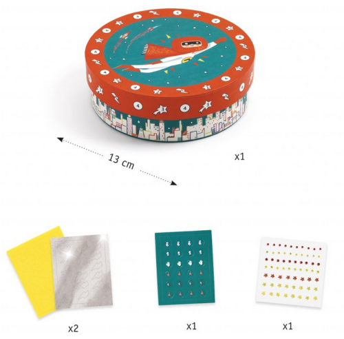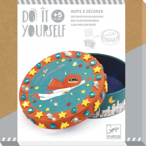 Krásná krabička se superhrdinou určená k dozdobení. Dozdobte krásnou krabičku pomocí samolepících kamínků a drahokamů. Po dozdobení si dovnitř můžete schovat všechny své drobné poklady. Vhodné pro děti od 5 let. Tento výrobek není hračka. Jedná se o dekorativní předmět.