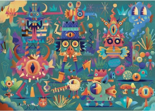 Metalické puzzle má speciální povrch, který se na světle z různých úhlů kovově leskne a vytváří tak dojem, že je puzzle ze zlata, stříbra a dalších lesklých kovů. Rozměr složeného puzzle cca 48 x 34 cm