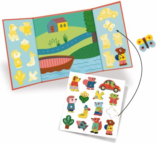 Děti mohou zvířátka umisťovat do krajiny nebo hledat správné místo pro konkrétní samolepku podle obrysů. Přemístitelné samolepky se mohou stále dokola aplikovat. Ideální na cesty. Samolepky jsou vhodné pro děti od 18 měsíců. Velikost rozložených desek je 43 x 23 cm. Balení obsahuje: 13 přemístitelných samolepek a desku s motivem krajiny.
