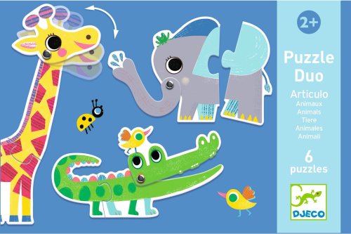 6 dvoudílných obrysových skládaček s motivem zvířátek velké dílky, vhodné pro nejmenší děti baleno v kartonové krabičce s ouškem na přenášení ekologické balení šetrné k životnímu prostředí