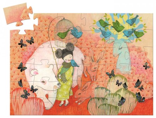 Puzzle s motivem japonské gejši v krásné tvarované krabičce. Rozměr složeného puzzle cca 30 x 42 cm