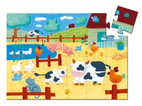 Krásné puzzle s kravičkami na statku a mnoha dalšími zvířátky. Krabička bude zajímavou dekorací dětského pokojíčku. Rozměr složeného puzzle cca 42 x 30 cm