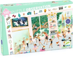 Puzzle DJECO Observation kombinuje skládání s přirozenou dětskou zvědavostí. Nejprve poskládejte obrázek a pak hledejte detaily zobrazené v rámečku kolem obrázku. Kdo jako první najde kočku? A co mašli? Součástí balení je předloha skládaného motivu. Rozměr složeného puzzle cca 61 x 38 cm