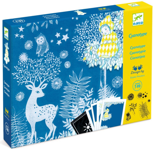 Při vystavení slunečnímu záření se na papíře vytvoří stíny vzorů. Poté stačí papír opláchnout v čisté vodní lázni a sledovat, jak se design objeví na modrém pozadí! Balení obsahuje: 4 laserem řezané rámečky, 8 listů fotocitlivého papíru (21 x 28 cm), 85 vzorů vytištěných na acetátu, 1 list plexiskla a 1 list oboustranných samolepek.
