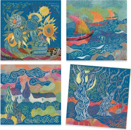 Designová sada oblíbených vyškrabávacích obrázků inspirovaná slavným umělcem Vincentem Van Goghem.