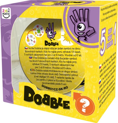 Hra nabízí zcela unikátní zábavu. Hráči zde hledají dva stejné symboly na kartách při různých verzích hry (v pravidlech je popsáno celkem 5 her). Super jsou kulaté karty i jednoduchá pravidla vysvětlená doslova za pár sekund. Cílová skupina jsou děti i rodiče - všichni, kdo se chtějí pořádně bavit a nemají čas pročítat dlouhá pravidla. Plechová krabička zaručuje bezpečí karet a jednoduše umožňuje mít hru vždy u sebe. Vyzkoušejte i Vy postřehový fenomén Dobble a jistě budete překvapeni, jak i tak jednoduchá hra může být zábavná!