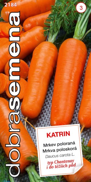 KATRIN - mrkev typu Chantenay. Kořeny jsou kratší, konické, s kulatou špičkou a širokou hlavou. Tvarově i velikostně jsou velice vyrovnané. Vnitřní struktura kořene je jednolitá, rovnoměrně vybarvená, dužina je šťavnatá a sladká. Vhodná i do těžších půd.