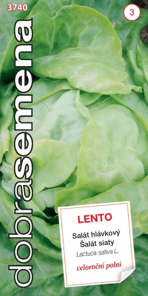 LENTO - spolehlivý a osvědčený salát pro celoroční polní pěstování z přímých výsevů. Hlávka je větší, tmavě zelená, kulovitá, dobře uzavřená. Odrůda má vysokou odolnost k vybíhání do květu, hlávky nepodehnívají. Vegetační doba je 63–75 dní. Vysévejte přímo na stanoviště ve špetkách a po vzejití vyjednoťte.