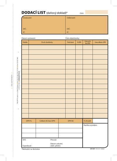 Dodací list, A5, 100 listů, perforace v levé části tiskopisu, NCR