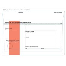 Dodejky ve formátu B6 s červeným pruhem (bez poučení) Samopropisovací provedení s perforací pro snazší odtržení klopy Zadní strana bez textu Lepení: samolepicí Rozměry: 17,6 x 12,5 cm Gramáž papíru: …