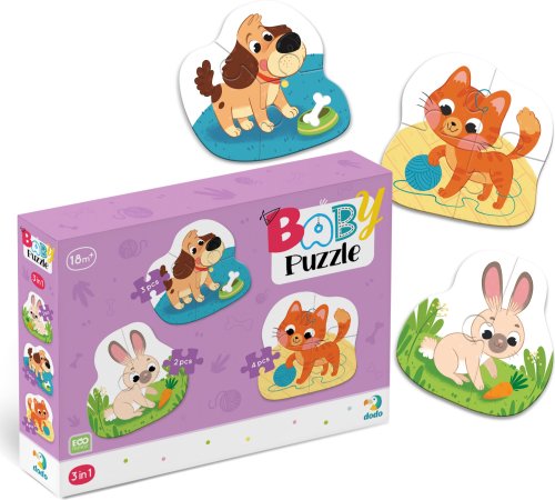 Dětské obrysové puzzle s motivem domácích mazlíčků.