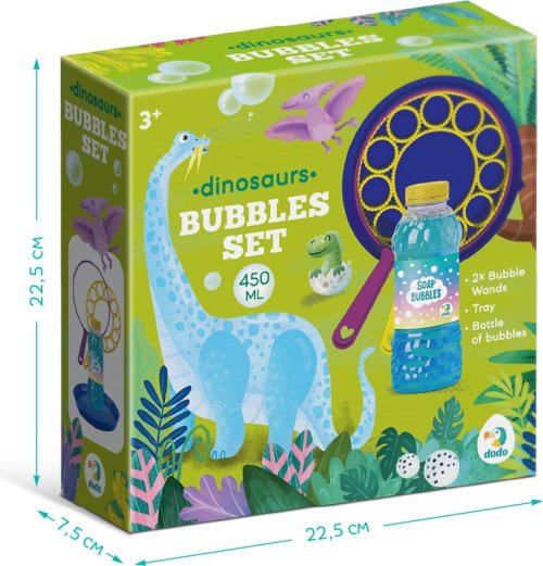 Dětská bublifuková sada s roztokem na bubliny o objemu 450 ml.