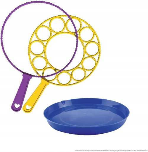 Sada obsahuje 2 obruče - 1 pro výrobu velkých bublin a jednu pro miliony malých bublinek. Již při malém množství tekutiny dokážete vytvořit úžasné bubliny. Sada obsahuje náplň 0,45 litrů.