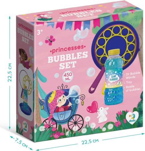 Dětská bublifuková sada s roztokem na bubliny o objemu 450 ml.