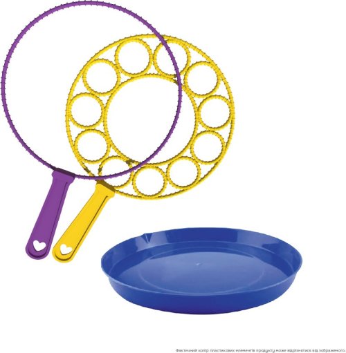 Sada obsahuje 2 obruče - 1 pro výrobu velkých bublin a jednu pro miliony malých bublinek. Již při malém množství tekutiny dokážete vytvořit úžasné bubliny. Sada obsahuje náplň 0,45 litrů.
